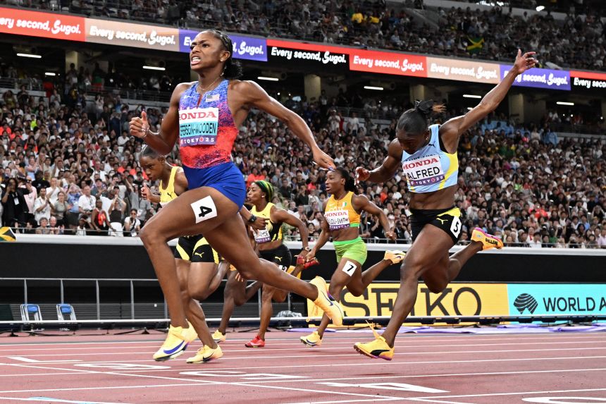 U.S. Star Jefferson-Wooden Wins Women’s 100m World Championship in Record Fashion